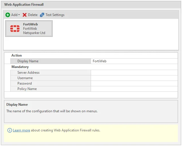 For further information, see Generating FortiWeb Web Application Firewall Rules from Netsparker, Issue Tracking Systems and Web Application Firewall Support.