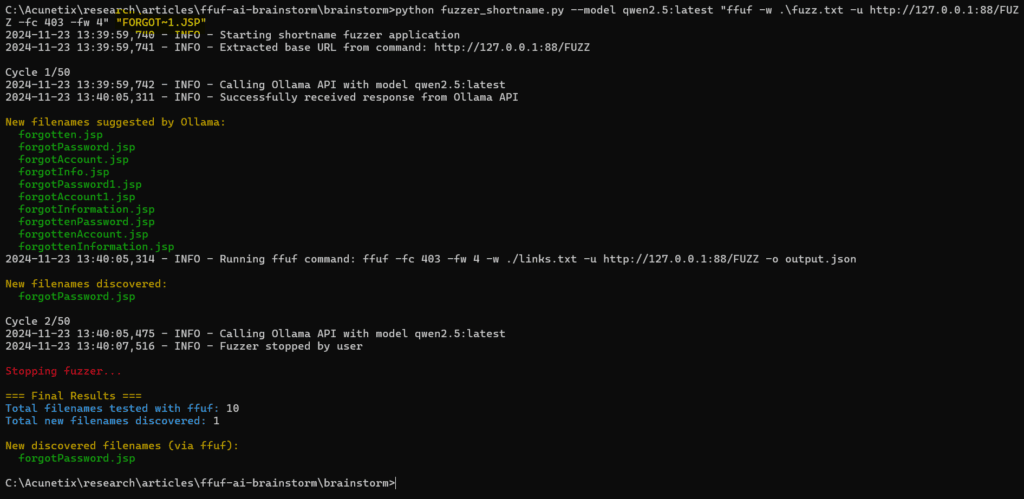 to try to guess full names when provided with a short filename. The new script is fuzzer_shortname.py. You provide this script with ffuf command line and with a short filename and the LLM will try to brainstorm full filenames.