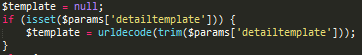 The $loggedin template variable was assigned above and is only true if the user is logged in. The output of detailtemplate is in {$e_message}. As already mentioned, this is still encoded with HTML specialchars, even though urldecode() was already used to remove URL-encoded values.