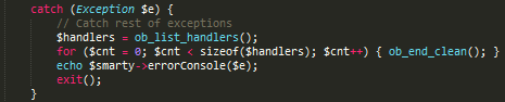 The errorConsole function is located in the lib/classes/internal/class.Smarty_CMS.php file, and contains the following code.