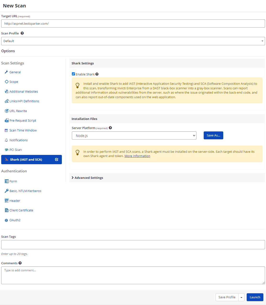 In addition to the Node.js support, we have also added support for a bridge URL and Shark tokens in Invicti IAST.