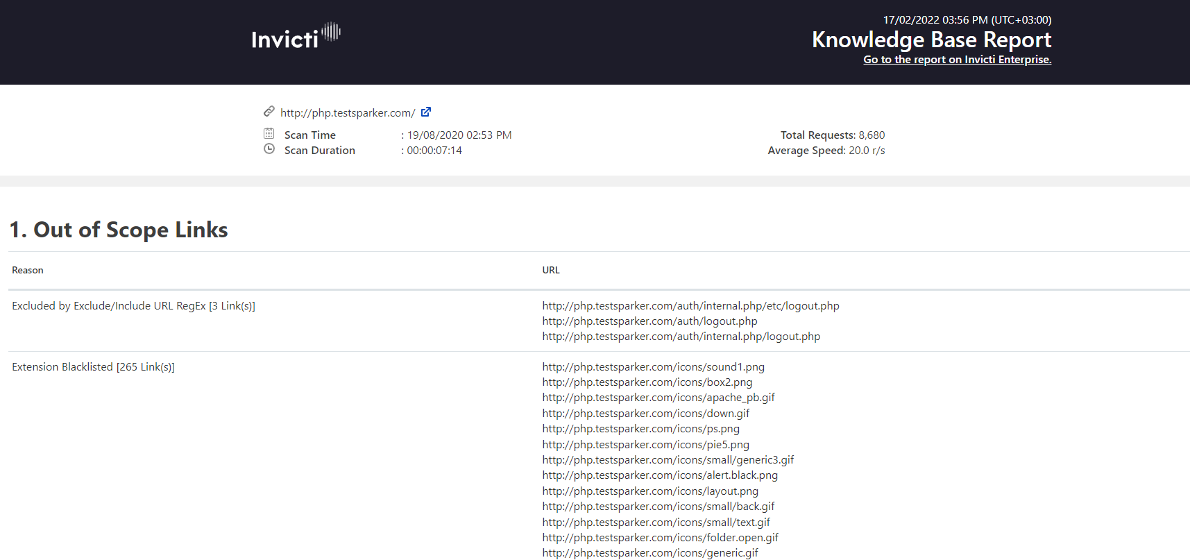 The Knowledge Base Report – unlike the Detailed Scan Report that developers rely on to list all vulnerabilities – lists additional information about the scan via a series of Knowledge Base Nodes. Reported issues include, for example, AJAX/XML HTTP Requests, CSS Files, External Scripts, Google Web Toolkit, Interesting Headers, and Web Pages With Inputs.