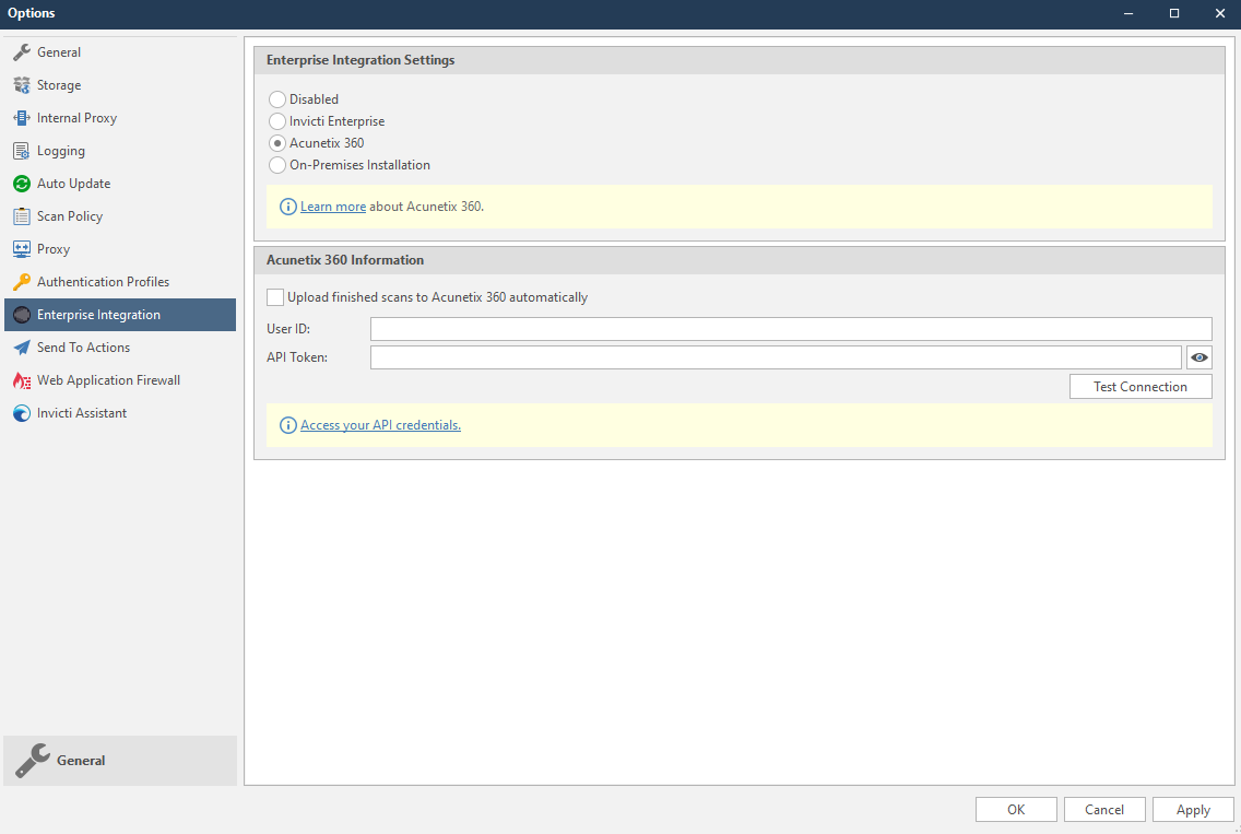 Invicti Security, the company behind Acunetix and Netsparker, has extended its integration capabilities as part of this update. So far, Netsparker Standard could integrate with Netsparker Enterprise to export and/or import scans between the applications. With this update, you can now integrate Netsparker Standard with Acunetix 360.