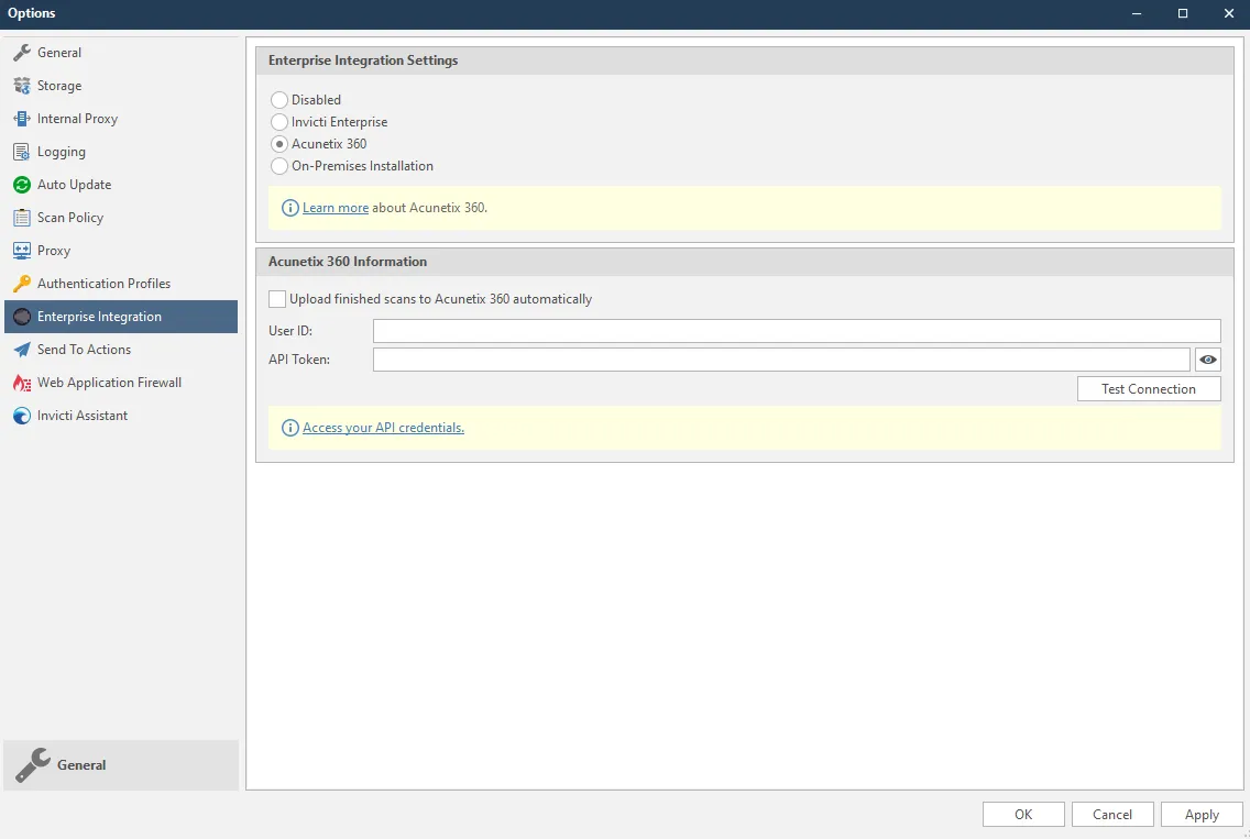 Invicti Security, the company behind Acunetix and Netsparker, has extended its integration capabilities as part of this update. So far, Netsparker Standard could integrate with Netsparker Enterprise to export and/or import scans between the applications. With this update, you can now integrate Netsparker Standard with Acunetix 360.