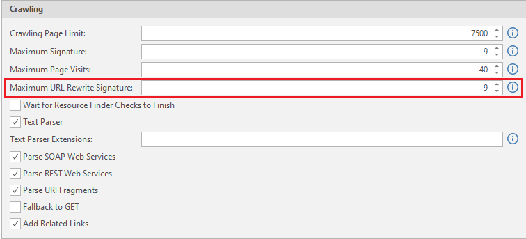 With the Scan Policy Editor feature of Invicti Standard, you can already configure many elements of the crawling stage of the scan. We have added a new signature limit for URL rewrite matched links. The default setting is 9. This value must be between 1 and 10000.