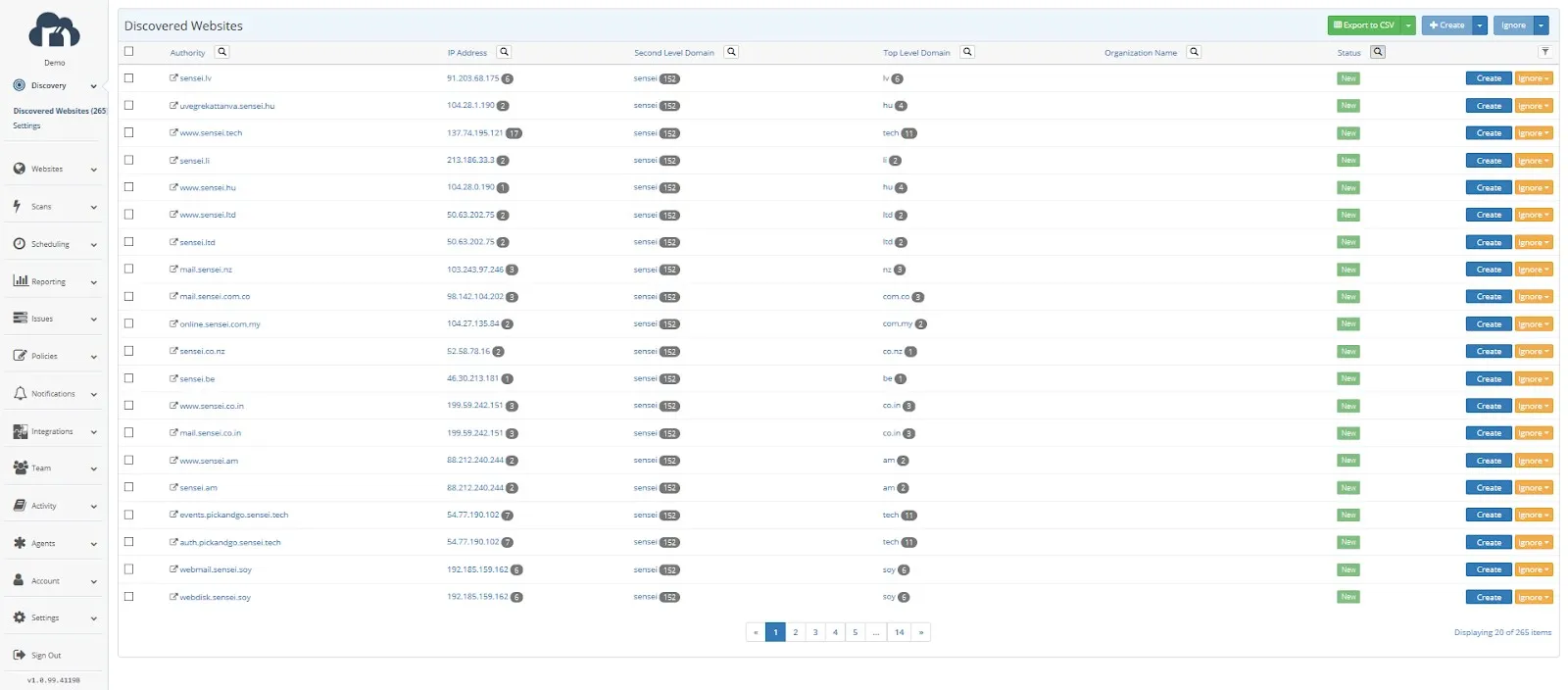 As a Netsparker Enterprise customer, you may have many targets to scan. You may not even have a complete list of targets. This feature enables you to become aware of the full scope of your online collateral. Netsparker Enterprise will use several sources and methods (certificate transparency logs, for example) to discover additional, potential target applications and services.