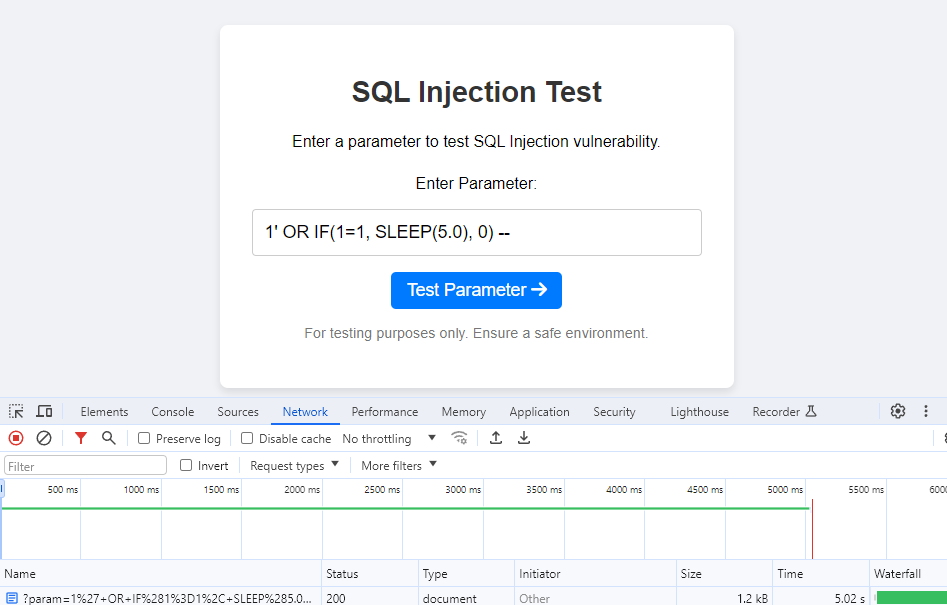 In this example, if the database is vulnerable, it will wait (or “sleep”) for 5 seconds before responding. This delay tells the attacker that their code worked, confirming that the database is at risk. Time-based SQL injection effectiveness is highly dependent on direct and uninterrupted interaction with the database, which modern environments with reverse proxies, cache servers, and other optimizations can disrupt. Modern web environments often include features like reverse proxies, caching, and content delivery networks (CDNs) to improve performance and handle high traffic. These features can interfere with security testing methods, including time-based SQL Injection.