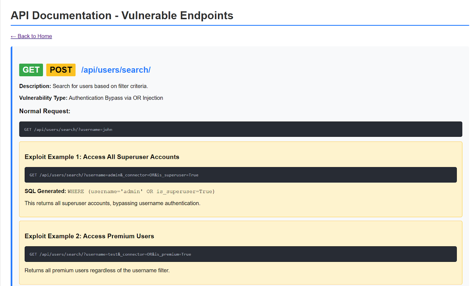 It also generated API documentation for the vulnerable endpoints so I can test them easily: