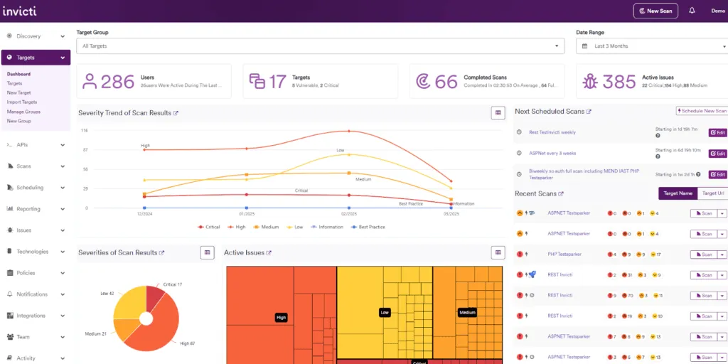 Acunetix by Invicti is a powerful DAST-only web vulnerability scanner tailored for smaller businesses and mid-sized enterprises just starting their application security programs. It provides fast, automated security testing at a price point accessible to SMBs.