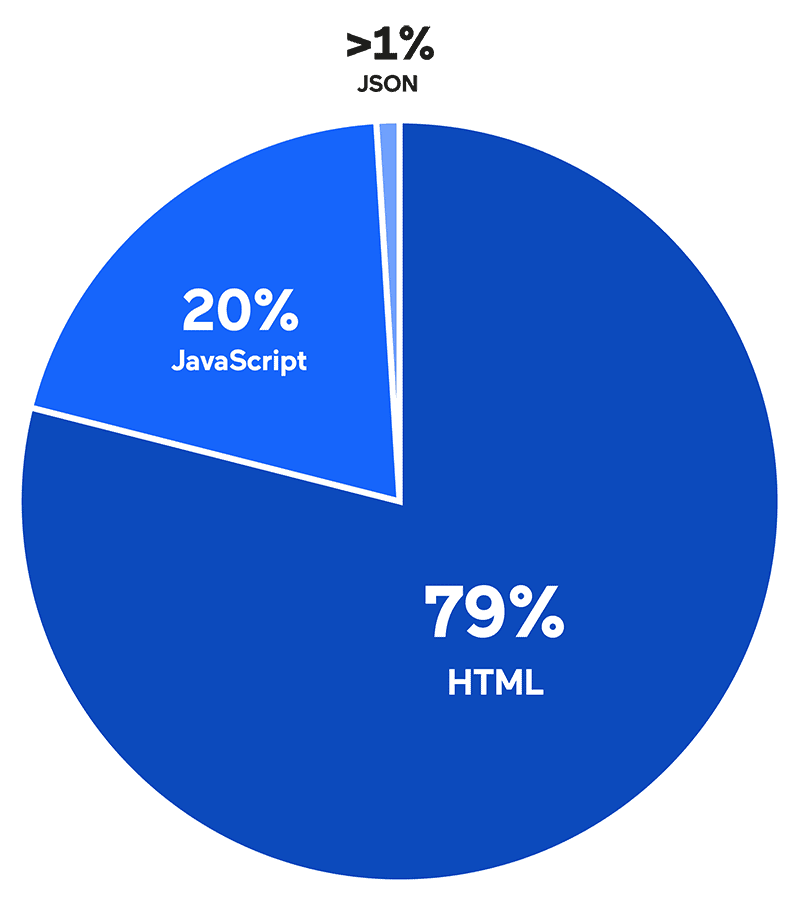 In terms of response types, over three-quarters of sensitive data strings (753) were exposed in HTML responses. Nearly all the others were revealed in JavaScript code, though a handful were also returned in JSON responses.