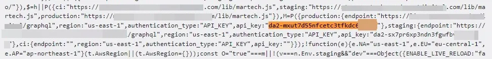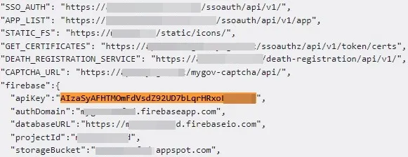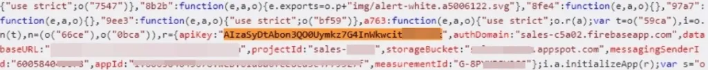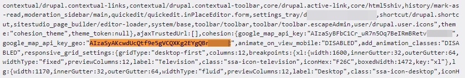 Google Cloud API keys start with AIza followed by 35 characters. For JavaScript and HTML responses, they can usually be detected using the apiKey="AIza..." signature. In total, we detected 171 Google Cloud data keys on 158 different websites, with 95 responses being HTML, 75 JavaScript, and 1 JSON. Here are some examples of Google Cloud API keys: