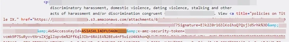 Our test identified 108 sites exposing a total of 212 AWS access keys, which means that 1.08% of the world’s biggest websites expose their AWS keys in web responses. While most of the sensitive data was encountered in HTML responses, some was also exposed via JavaScript and JSON files. Here are a few AWS keys from our results: