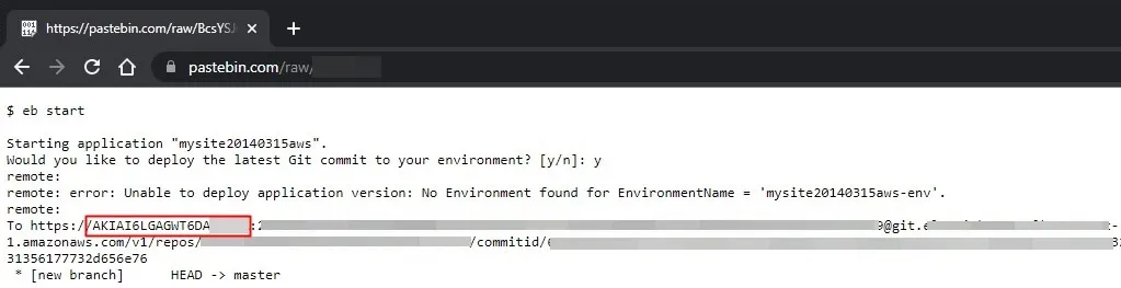 AWS access key ID exposed on Pastebin