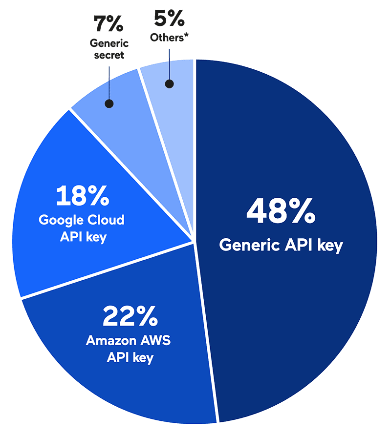 *Others: MailChimp API key, AWS AppSync GraphQL key, Facebook app secret, Slack Webhook, Amazon AWS secret key, Twitter access token secret, Github Private, Facebook App ID, Facebook OAuth, Nexmo Secret, Google OAuth access token, Symfony application secret, Sentry auth token