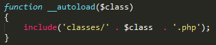 We were lucky that the 'Logging' class was included in the page. But what happens when the class is in another file that we don't have access to? If we are lucky, there is an autoloading feature on the page. Whenever a class is called – or an object is deserialized – PHP searches for the class. If it is not found, it will simply throw an error. However, when a function like the following is defined somewhere, PHP will pass the class name to it and then attempt to load the class again. It is only if that attempt also fails that it throws an error.