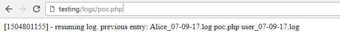 After this, we can look at logs/poc.php to see if our exploit attempt was successful.