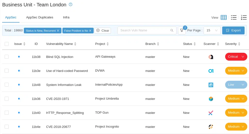 They also enable comparisons between the security performance of projects, teams and scanners which helps the management have a clear understanding of the general vulnerability management trend in the company and take actions based on data.