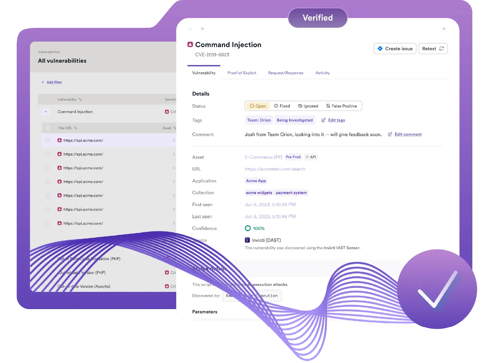 Invicti combines dynamic (DAST) and interactive scanning (IAST) to provide the most comprehensive automated vulnerability detection on the market.