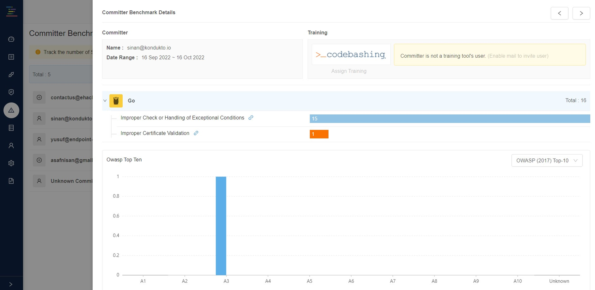 Monitor developer improvement over time through vulnerability trends.